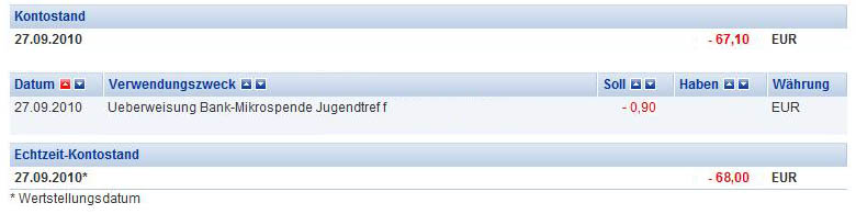 Offizielle Absage einer Kreissparkasse v. 14.09.2011 (Auszug): "Aktuell ist die technische Voraussetzung für die Umsetzung des Projekts leider nicht gegeben. Als verhältnismäßig kleine Sparkasse besteht für uns keine Möglichkeit, über das zentrale Rechenzentrum der Sparkassen daran kurzfristig etwas zu ändern. Es ist uns allerdings wichtig, alle Möglichkeiten für eine Projektumsetzung auszuschöpfen. Wir haben die Anfrage deshalb an den baden-württembergischen Sparkassenverband, als übergeordnete Stelle, weitergeleitet."